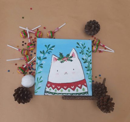“Tranh Vẽ Tay Chú Mèo Giáng Sinh Ô Cửa Sách – Đồ Decor Quà Tặng Dịu Dàng Và Ấm Áp Như Một Mùa Đông Ngọt Ngào